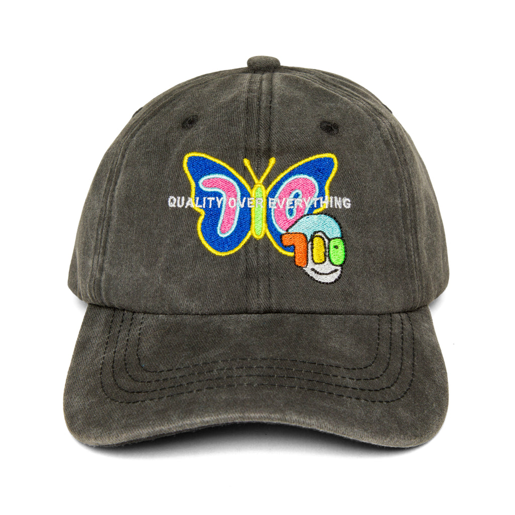 Butterfly Embroidered Hat, Black, One Size