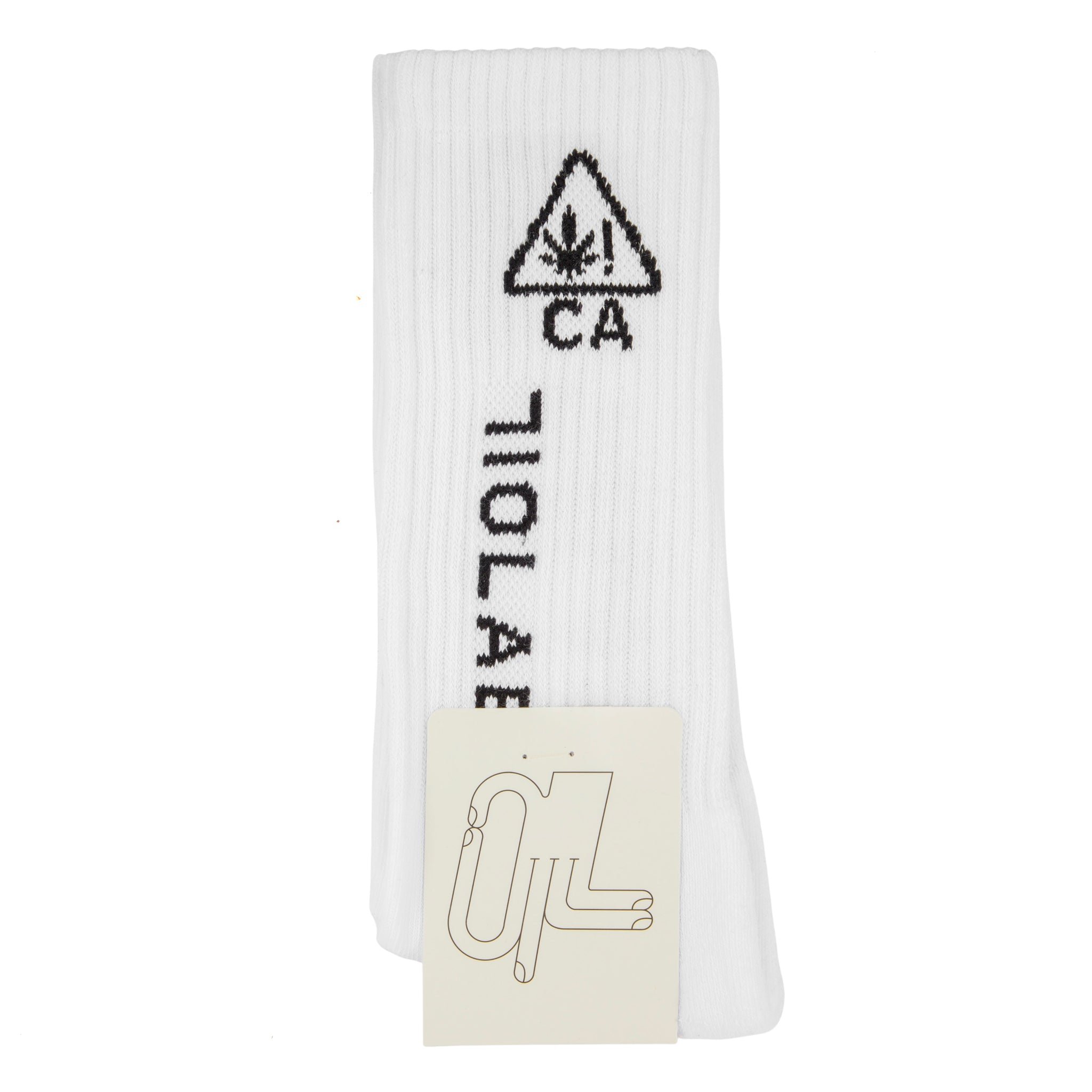 White, athletic crew with 710 Labs logo and state-specific "warning symbol" engineered directly into the socksRibbed upper with padded terry sole and ribbed arch supportSoft, combed cotton blend with polyamide for durability and moisture management plus elastane for stretch (80% Combed Cotton/17% Polyamide /3% Elastane)To keep your socks looking fresh and lasting long, we recommend you machine wash warm (inside out) and dry flatOne size fits most
